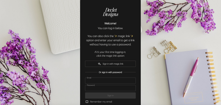 Now that you know how to log into your client portal, you can easily stay connected with Declet Designs. Whether you choose to use a password or the magic link option, accessing your account and managing your projects has never been easier.