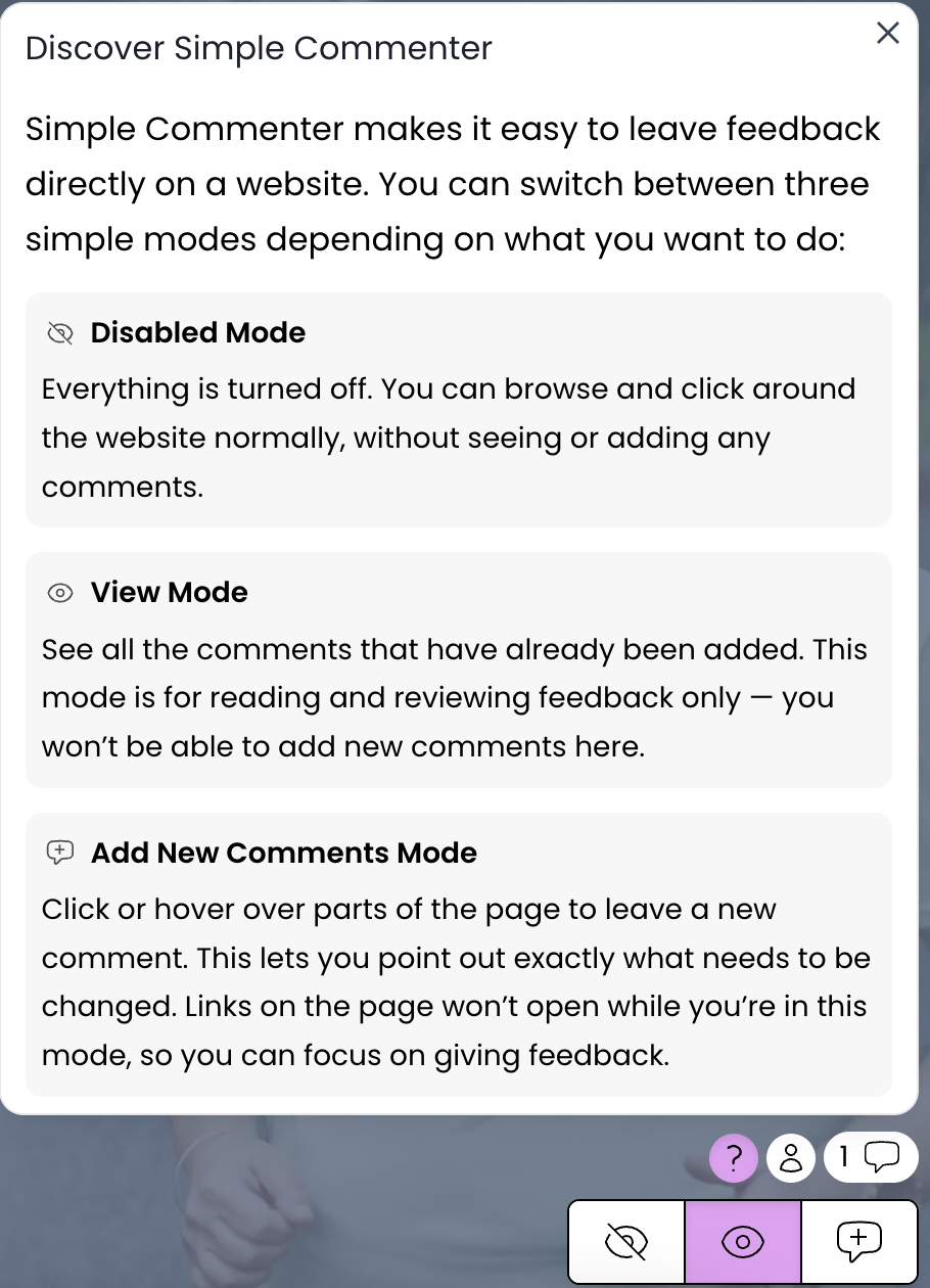 This quick guide shows you how to leave comments on your project using the Simple Commenter tool.